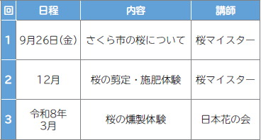 この講座は、初心者向けの内容となっていますので、興味がある方ならどなたでも参加できます。本講座を3回以上受講された方は、市が認定する桜守として「桜マイスター」の認定対象となりますので、興味がある方はぜひお申込みください。
