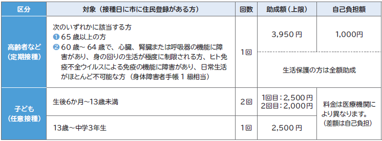対象:接種日に市に住民登録があり、次のいずれかに該当する方