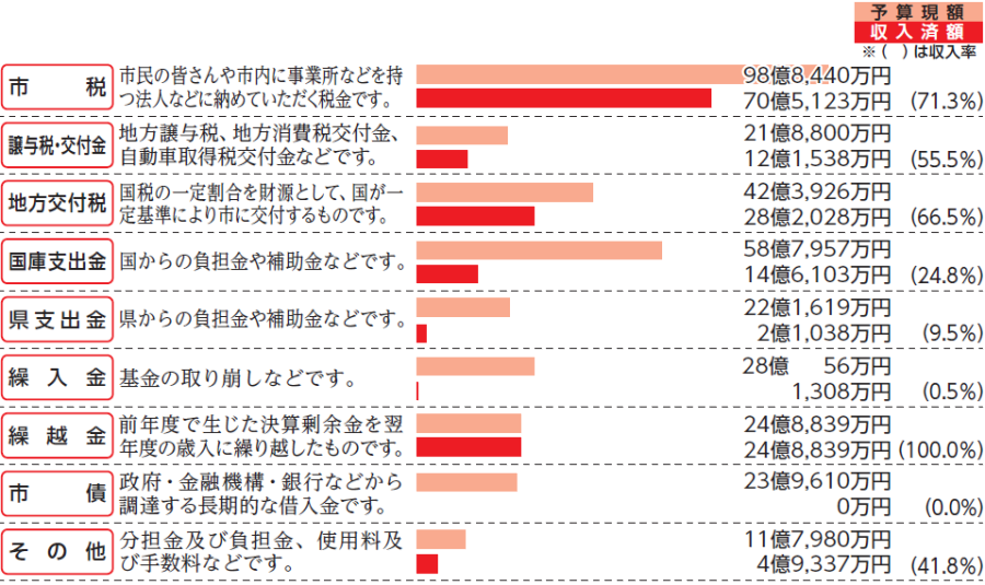 市では、皆さんに納めていただいた市税などの収入の状況や、それがどのように使われているか、また、市の財産や借入金の状況がどのようになっているか、年2回に分けて公表しています。