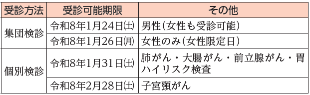 ※上記以外の集団検診の日程は、受診券または市ホームページをご覧ください。