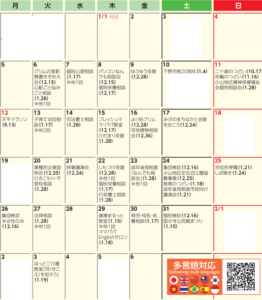 掲載されている行事やイベントは、延期・中止となる場合があります。最新の情報を確認してお出かけください。