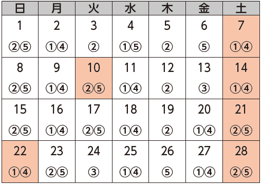 カレンダー内番号が当番医療機関です。事前に電話で確認してください。