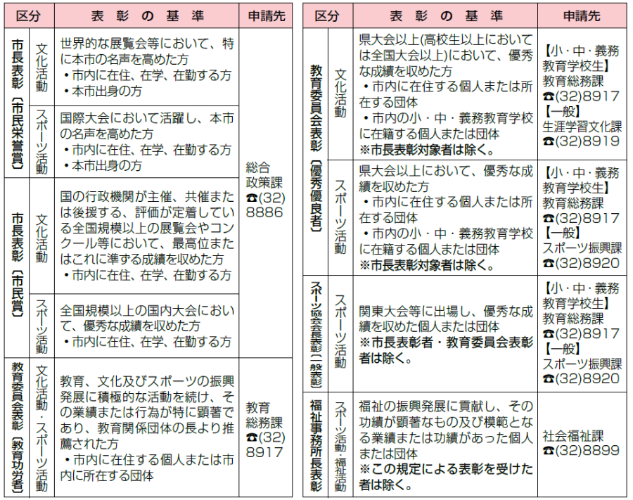 ※表彰者は、表彰ごとの基準により、審査会の審議を経て決定します。そのため、表彰の対象とならない場合がありますので、あらかじめご了承ください。