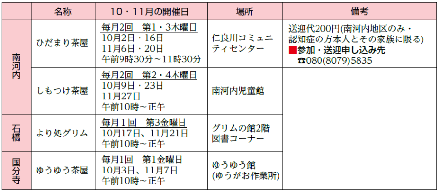 認知症の方やその家族・地域住民・専門職など、誰もが気軽に参加でき、集うことのできる場所です。