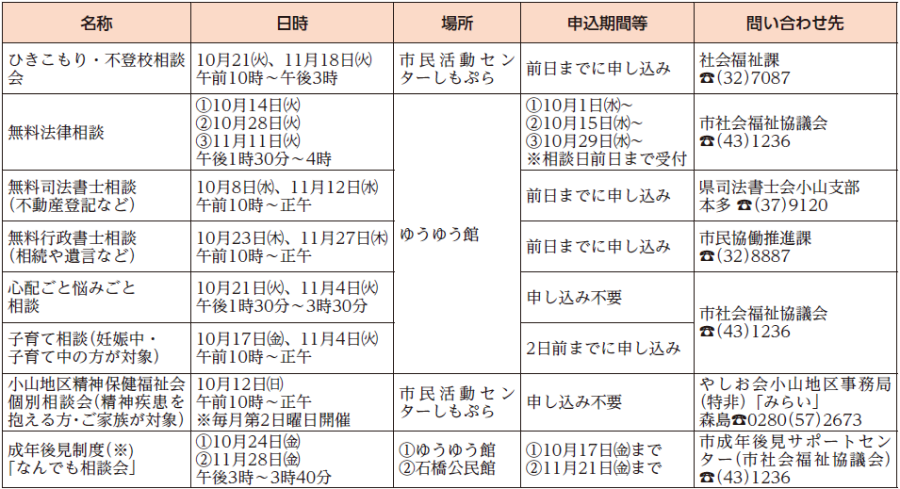 相談を希望する方は、問い合わせ先へお申し込みください。