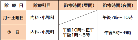 ・夜間休日急患診療所は内科医等が小児科の診療を担当することがありますので、事前に電話をしてから来院してください。