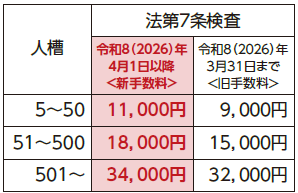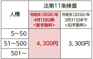 令和8年4月1日から法定検査手数料が次のとおり変更になります。