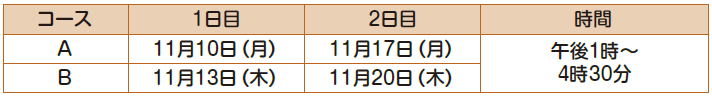 内容:下表のとおり(受付は午後0時45分からとなります)