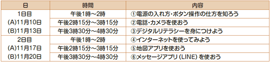 持ち物:ご自身のスマートフォン(お持ちでない方は貸出用で受講いただけます。)