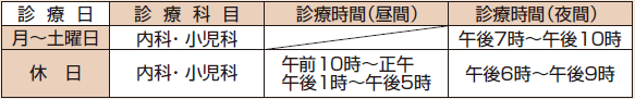 ・夜間休日急患診療所は内科医等が小児科の診療を担当することがありますので、事前に電話をしてから来院してください。