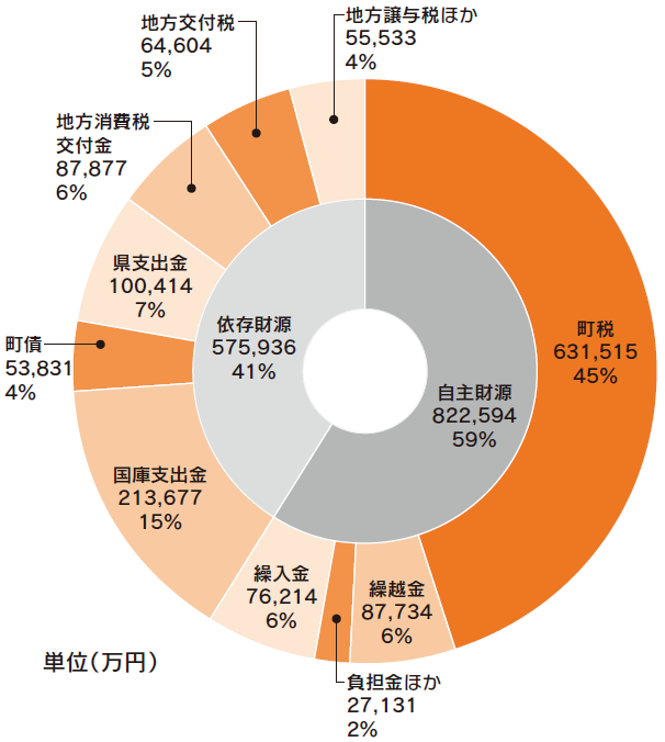 町債については、昨年度完成したORIGAMIプラザに対する借入がなくなったことから、3億9,166万円の減となりました。町債や国庫支出金の減により、依存財源は2億7,582万円の減となりました。
