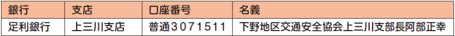 当団体の活動にご賛同・ご協力いただける町内事業所の賛助会員を随時募集しております。賛助金は、地域交通安全推進のため、交通安全啓発品や看板、横断旗の購入等、有効に活用させていただきます。