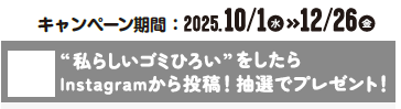 イベント ごみ拾いキャンペーン「Tochigi 530 project vol.2」 37/51 前の記事 次の記事 発行日 : 2025年11月01日 自治体名 : 栃木県上三川町 広報紙名 : 広報かみのかわ 2025年11月号 散歩の合間等にゴミを拾い、その様子をインスタグラムに投稿した方に宿泊券などが当たるキャンペーンを開催しています。この機会にぜひごみ拾いに取り組んでみませんか。 実施期間:12月26日(金)まで ※詳しくは本紙をご覧ください。 問い合わせ先:栃木県資源循環推進課 【電話】028-623-3228 Tweet シェアする 町営住宅入居者募集 お知らせ版(3)