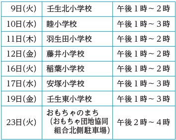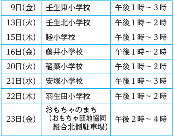 12月6日・13日・20日・27日・1月10日・17日・24日・31日 いずれも土曜日 午前10時~10時30分