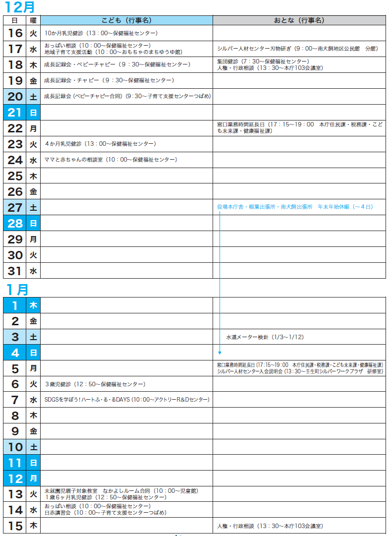 イベントの開催状況については、町の公式ウェブサイトを確認するか、各担当課にお問合せください。