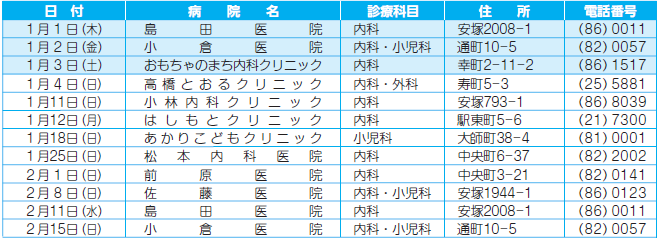 ■壬生町在宅当番医 午前9時~午後5時