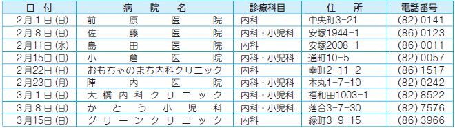 ■壬生町在宅当番医 午前9時~午後5時