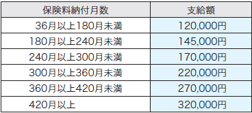・死亡一時金の額は、保険料を納めた月数に応じて決まります。(免除制度により一部納付した期間は、納付率に応じて算出されます)