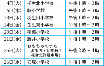 日時:10月11日(土)・25日(土) 午前10時~午後3時
