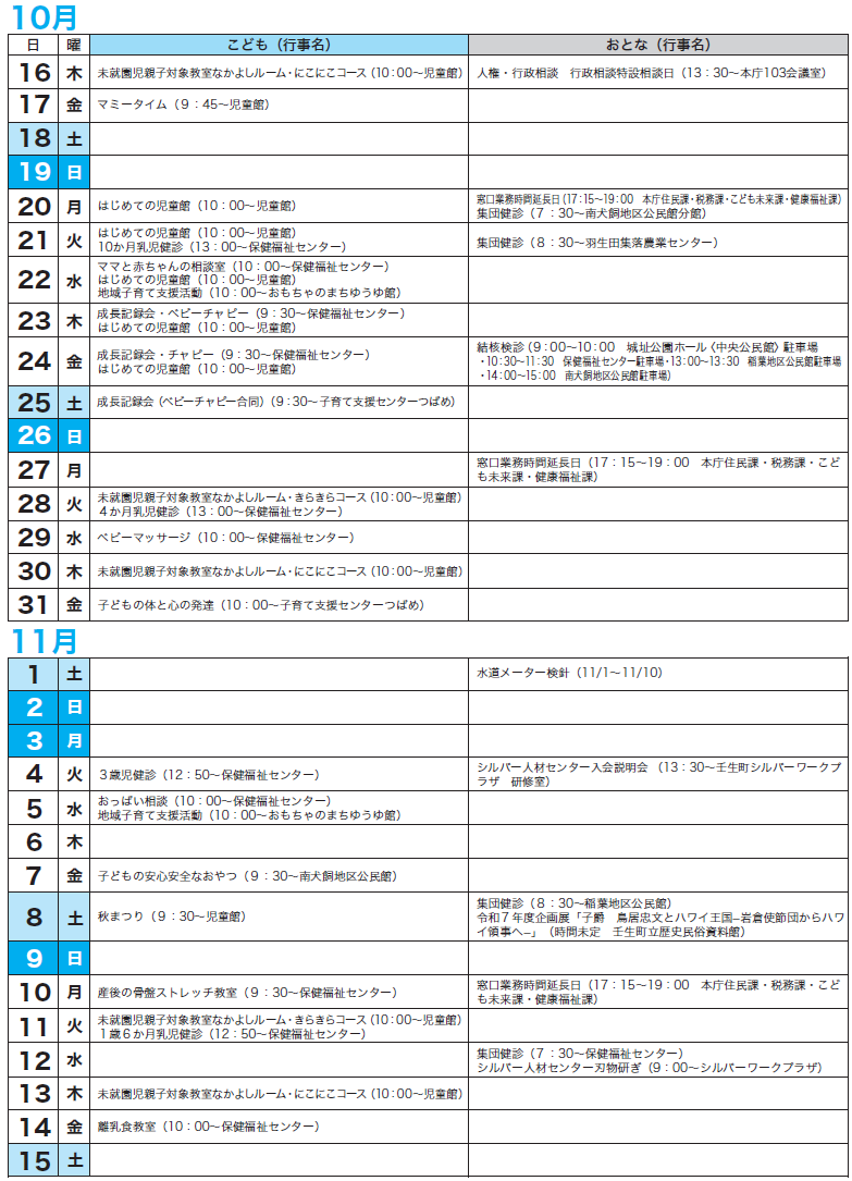 イベントの開催状況については、町の公式ウェブサイトを確認するか、各担当課にお問合せください。