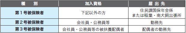 加入者は職業等によって3つの種別に分かれ、それぞれ届出先が異なります。