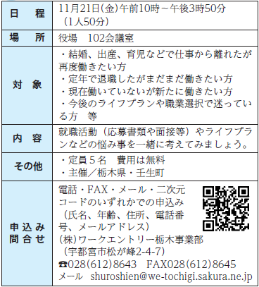 ■【栃木県】女性やシニア等の求職者対象個別相談会