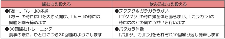 フレイル(心身の機能が衰えた状態)予防には、「運動」「栄養・口腔機能向上」「こころの健康」の3つをバランスよく実践することが大切であり、今月は「栄養・口腔機能向上」についてご紹介します。
