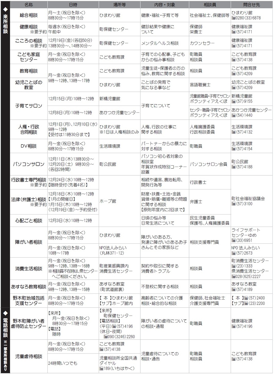 くらし 相談コーナー 21/35 前の記事 次の記事 発行日 : 2025年12月01日 自治体名 : 栃木県野木町 広報紙名 : 広報のぎ 2025年12月号 その他の相談機関については、町HPをご覧ください。 Tweet シェアする 「広報のぎ」有料広告募集 関東どまんなかサミット情報