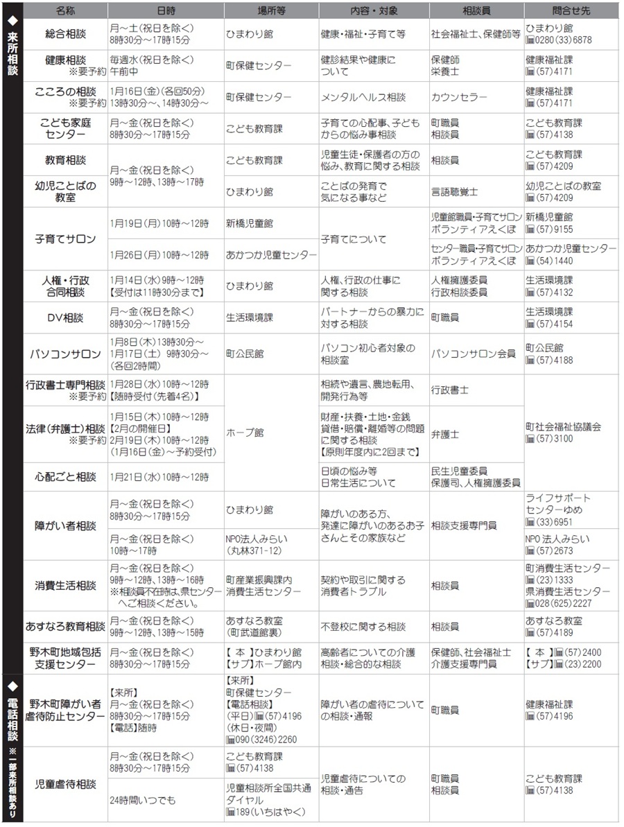くらし 相談コーナー 20/38 前の記事 次の記事 発行日 : 2026年01月01日 自治体名 : 栃木県野木町 広報紙名 : 広報のぎ 2026年1月号 その他の相談機関については、町HPをご覧ください。 Tweet シェアする こどもひろば(3) 教委だより