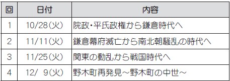 日本史と野木町史(中世入門編)を、4回にわたってご案内します。