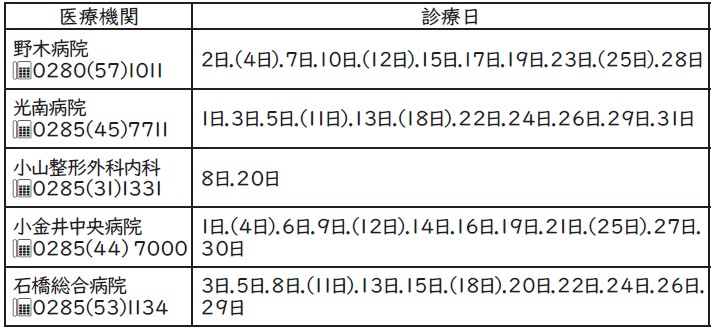 [夜間休日急患診療所]【電話】0285-39-8880