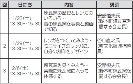国重要文化財に指定されている煉瓦窯と、煉瓦窯でつくられていたレンガについて、レンガづくりや見学などの体験を通して学ぶ講座です。