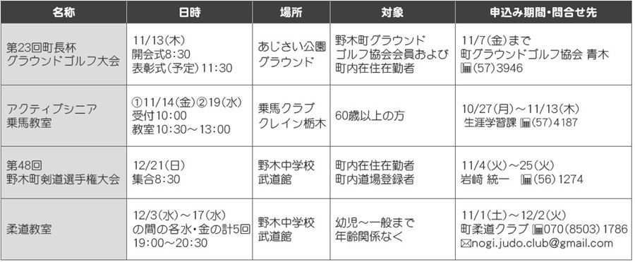 スポーツ スポーツ教室・大会のお知らせ 16/42 前の記事 次の記事 発行日 : 2025年11月01日 自治体名 : 栃木県野木町 広報紙名 : 広報のぎ 2025年11月号 各教室・大会の詳細は、町HPをご覧ください。 Tweet シェアする 生涯学習 野木ホフマン館(野木町交流センター)情報誌 つどい 第20号