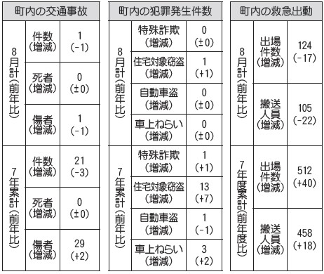 くらし 町内の交通事故/町内の犯罪発生件数/町内の救急出動 27/42 前の記事 次の記事 発行日 : 2025年11月01日 自治体名 : 栃木県野木町 広報紙名 : 広報のぎ 2025年11月号 ※交通事故・犯罪発生件数は警察発表の暫定値です。 ※「住宅対象窃盗」は空き巣・忍込み・居空きの合計です。 Tweet シェアする 町の人口(令和7年9月1日現在) がっこう