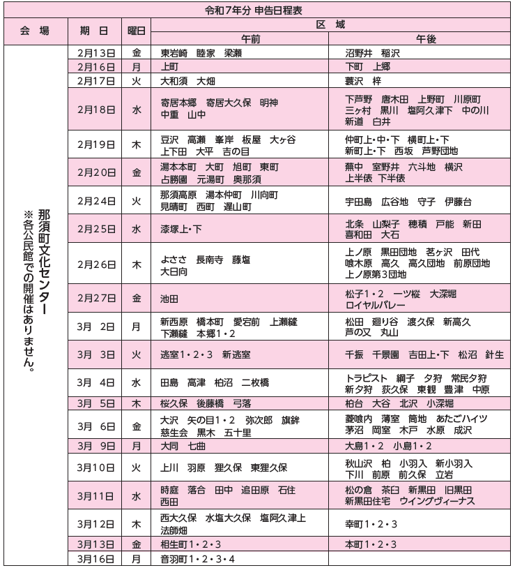 下記の日程により申告相談会を開催しますので、期限内の申告をお願いします。