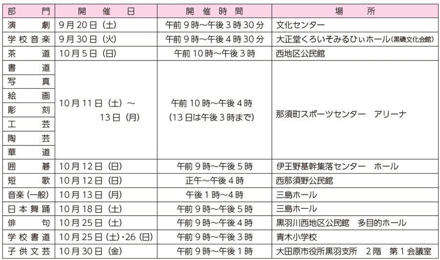 問合せ:那須地区芸術祭運営委員会事務局(生涯学習課文化振興係)