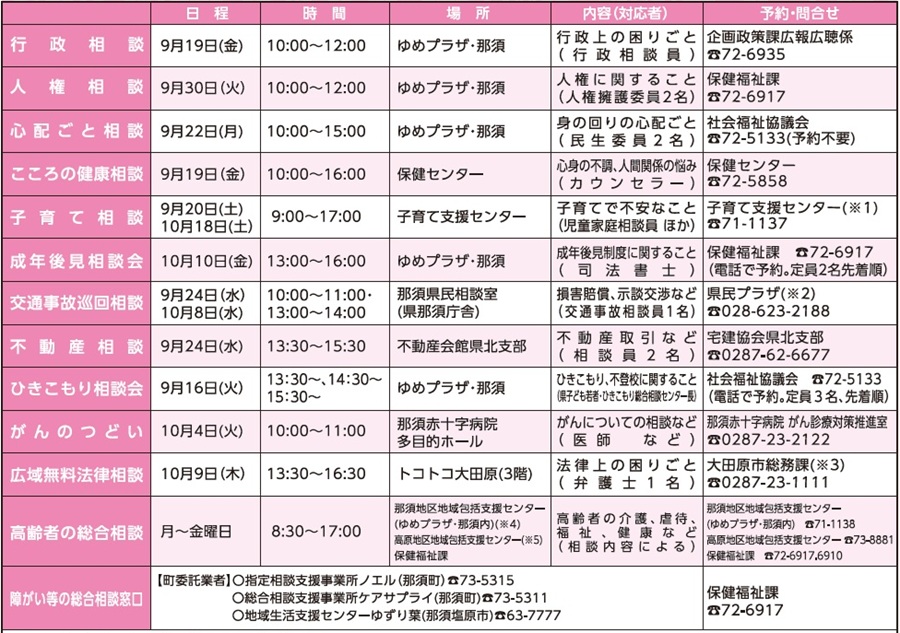 ※3 広域無料法律相談…10月2日(木)~8日(水)の期間に電話で予約。