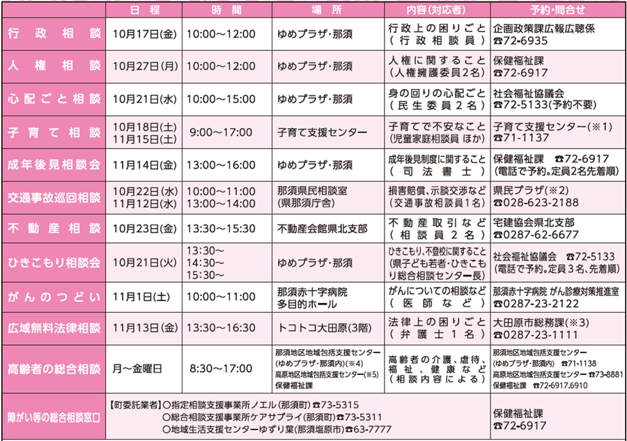 ※3 広域無料法律相談:11月6日(木)~12日(木)の期間に電話で予約。