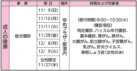 1歳6カ月児健診、2歳児歯科検診は「広報那須12月号」でお知らせいたします。