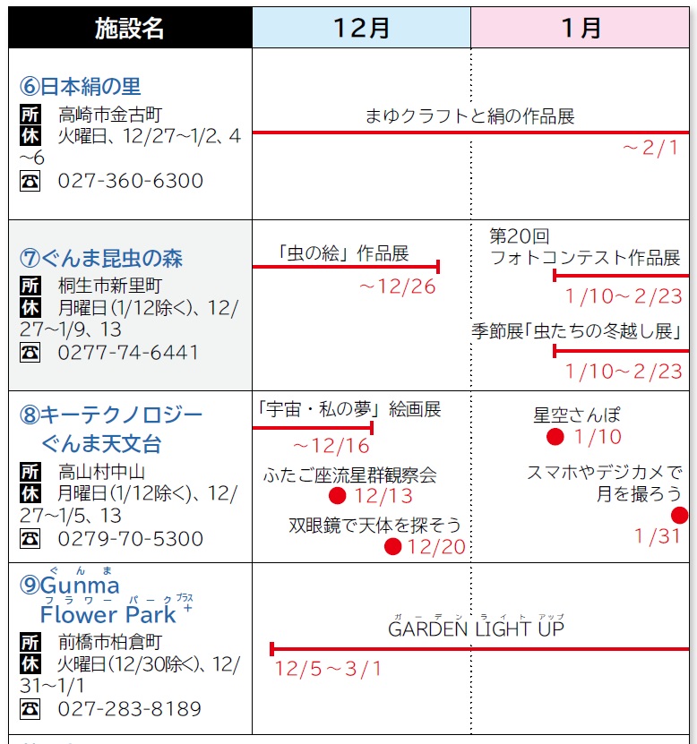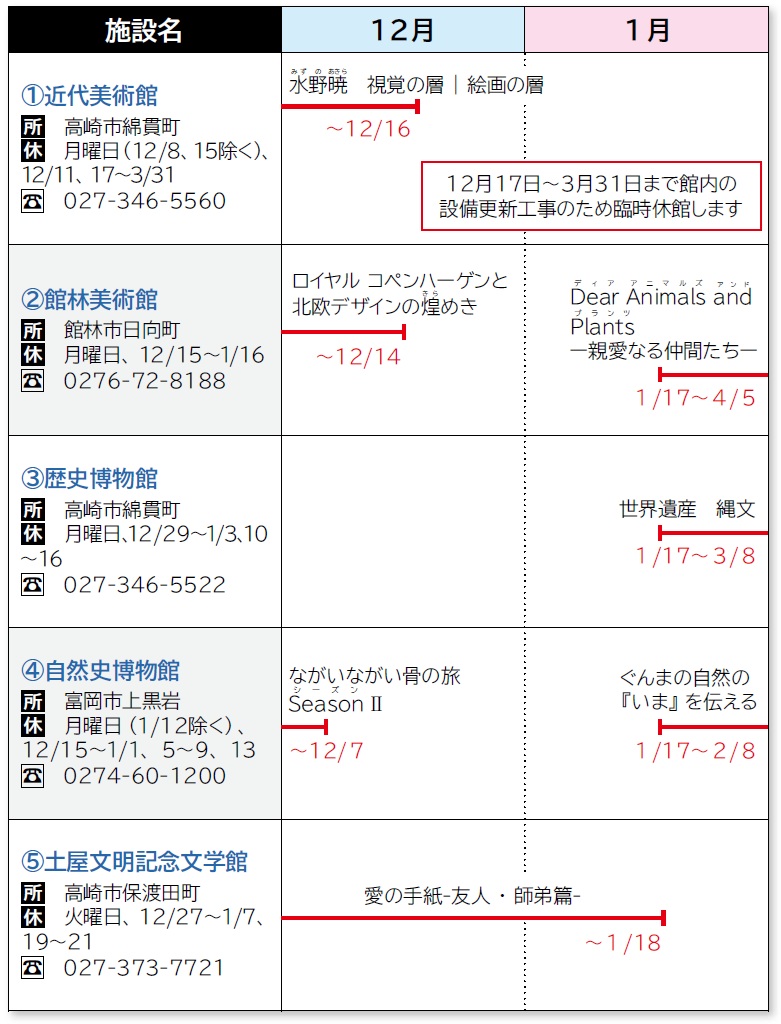 ※休館日・開館時間など、詳しくは事前に各施設へお問い合わせください