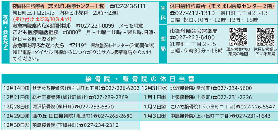 本紙1月号の休日当番医は1月4日(日)分から掲載します。