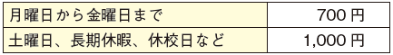 閉所日:日曜日、祝日、お盆、年末年始、台風や大雪などの自然災害時、感染症などによる学校閉鎖時など