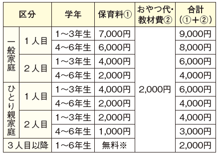 ※ひとり親家庭の1・2人目、一般家庭の2人目は半額。3人目以降は保育料無料で、おやつ代・教材費として1日あたり100円を徴収。
