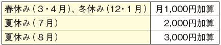 (2)長期休暇分の加算長期休暇中に1日でも利用する場合は、(1)に次の額を加算