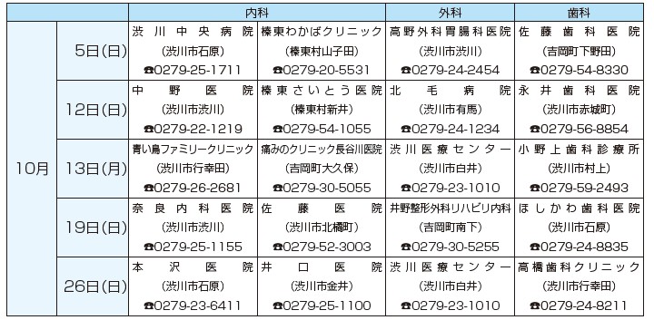 くらし 休日当番医 13/23 前の記事 次の記事 発行日 : 2025年09月20日 自治体名 : 群馬県榛東村 広報紙名 : 広報しんとう 2025年9月号 急病で救急車を要する場合は、迷わず「119番」 救急医療情報テレフォンサービス【電話】0279-23-0099 夜間急患診療所(19時から22時まで、年中無休)【電話】0279-23-8899 Tweet シェアする お元気ですか 保健相談センターです 行政相談を開催します