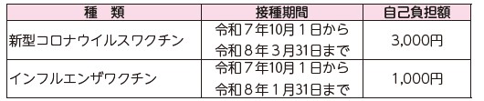 ※新型コロナウイルスワクチンとインフルエンザワクチンで接種期間が異なります。