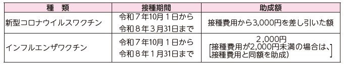 ※助成が受けられるのは、接種期間内にそれぞれ1人1回のみです。