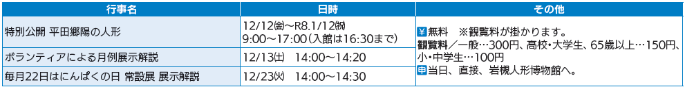 岩槻人形博物館…月曜日、12/16(火)、12/28(日)~R8.1/4(日)
