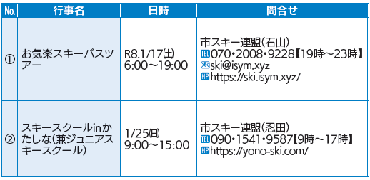 対象:市内在住、在勤又は在学で、(1)は小学4年生以上の方、(2)は小学3年生以上の方