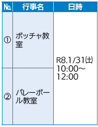 申込み・問合せ:12月1日(月)~13日(土)(必着)に、往復はがき又はEメールで、必須事項と年齢(学年)、性別、生年月日、学校名を、〒331-0804北区土呂町2-85-8市体操協会(山田)へ。